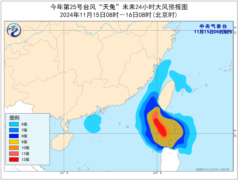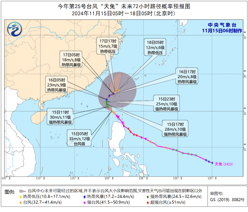 中央氣象台11月15日06時發佈颱風藍色預警: