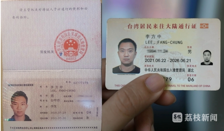 他皮夾裏那枚小小的台胞證也見證了兩岸交流的不斷深入。“那時候的台胞證是一個褐綠色的本子,2010年左右換成了卡式的,再到2017年讀研時,發放了台灣居民居住證。”自帶芯片的台胞證,讓方中外出交通、住宿變得更加便利:“過高鐵站時直接刷卡,不用取票了;辦理酒店入住,也能夠直接識別。”這也進一步點燃了李方中探索祖國大好河山的熱情,這些年,以湖北老家為圓心,他先後打卡了北京、上海、廣州、深圳、鄭州、西安等76座城市,用腳步丈量了祖國的壯美河山。