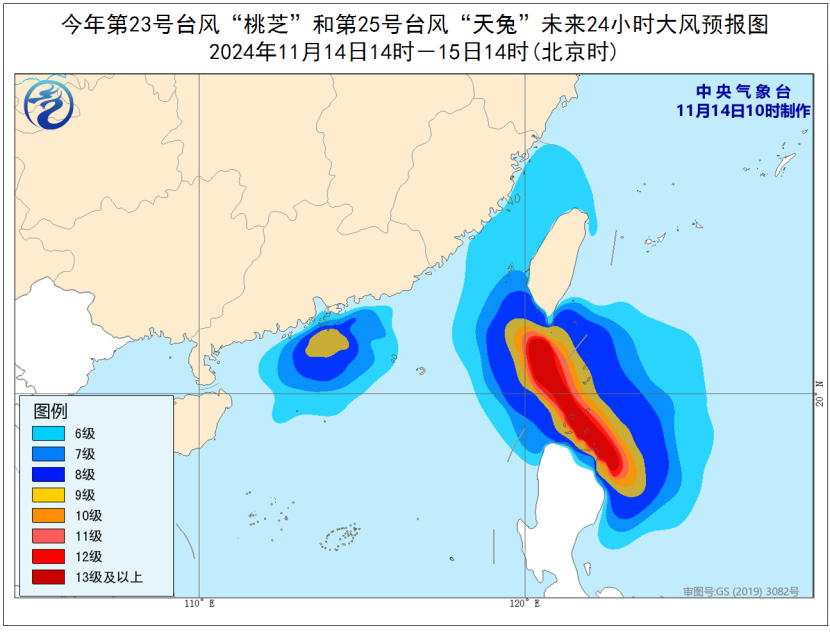 18-19日,閩中漁場、閩南漁場和台灣淺灘漁場8~9級、陣風10~11級。
