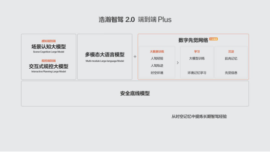 此外,極氪的MLM多模態大語言模型及安全底線模型也為端到端Plus提供了堅實的支撐。MLM能夠認知複雜交通場景,並具備物理世界的通識,相當於人類應對複雜場景有意識的思考和推理能力。安全底線模型可及時介入,糾正錯誤的輸出結果或決策建議,保障系統的正常運行。