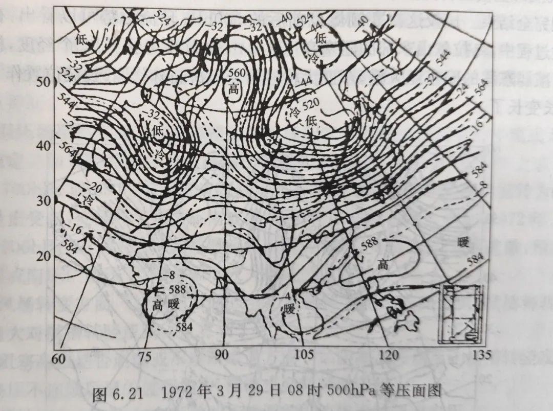通常強冷空氣和寒潮出現的前後,中高緯度往往會出現大的槽脊,也就是等高線有明顯的南北走向。這樣地面冷空氣,不能通暢地向東走,如同在河流中建了個大壩,把水蓄積起來,等環流調整,大壩開閘放水,冷空氣就會傾瀉而下,形成寒潮天氣(下圖為《天氣學原理和方法》中給出的經典寒潮形勢)。