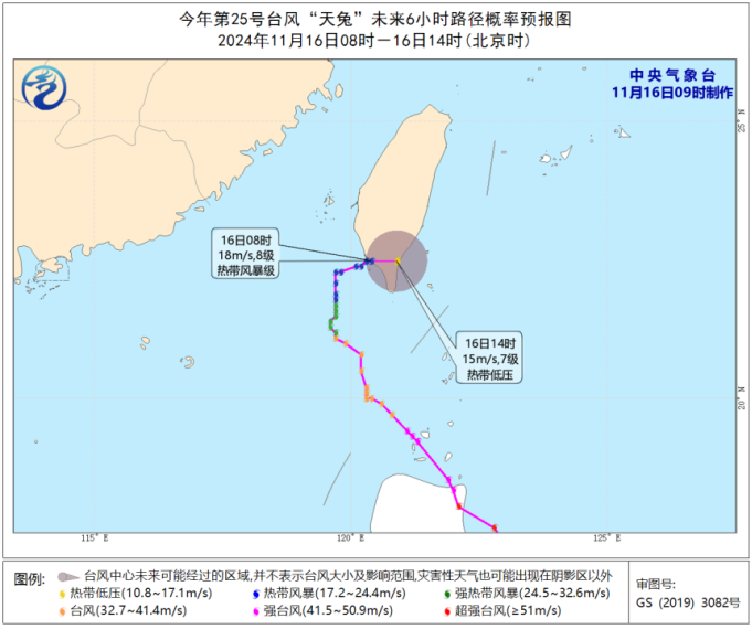 今年第25號颱風“天兔”已於16日早晨8時前後登陸台灣省高雄市,登陸後將以每小時10~15公里的速度向東偏北方向移動,強度逐漸減弱。