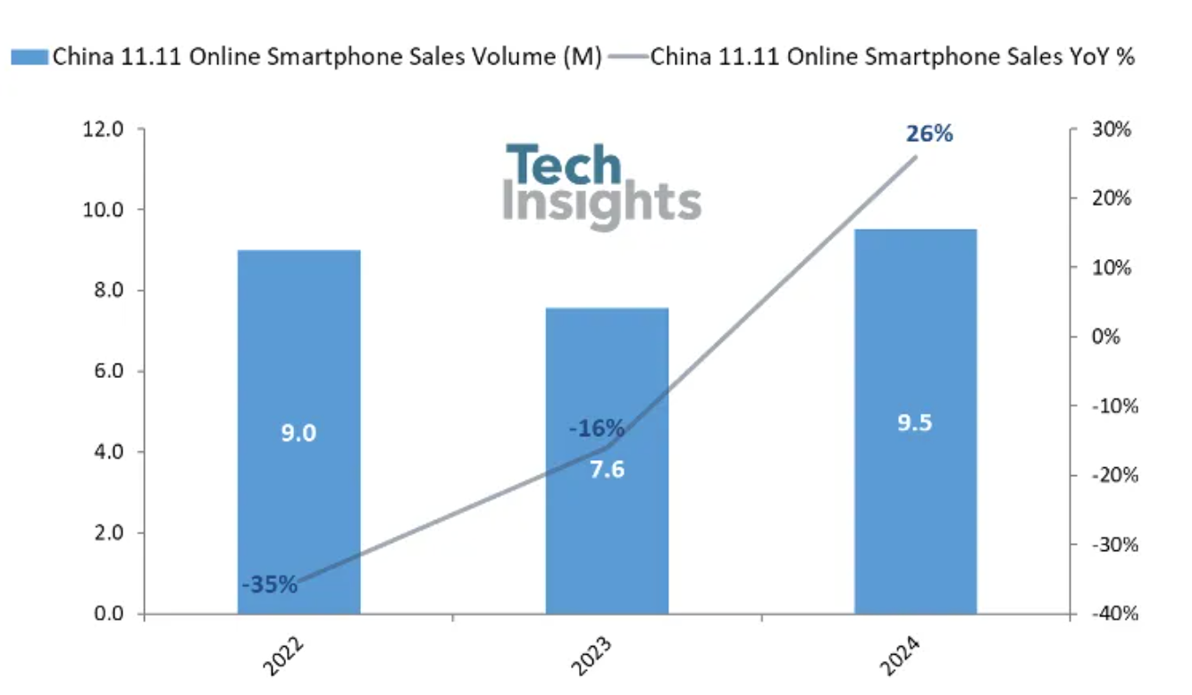 TechInsights:2024年“雙十一”中國智能手機銷量強勁反彈