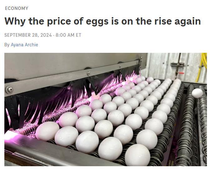 美國國家公共廣播電台網站今年9月一篇關於雞蛋價格上漲的報道截圖