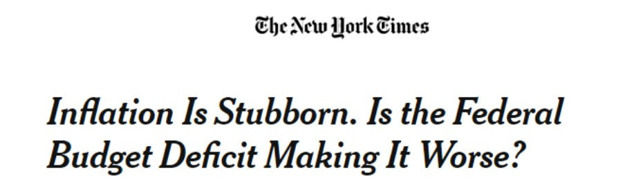 《紐約時報》報道稱,包括國際貨幣基金組織高級官員在內的一些經濟學家指出,美國的通脹之所以如此頑固,聯邦政府應該承擔部分責任,因為它在經濟不需要財政刺激的時候繼續向經濟注入大量借來的資金,這些借款是減税和支出增加導致聯邦預算赤字上升的結果。