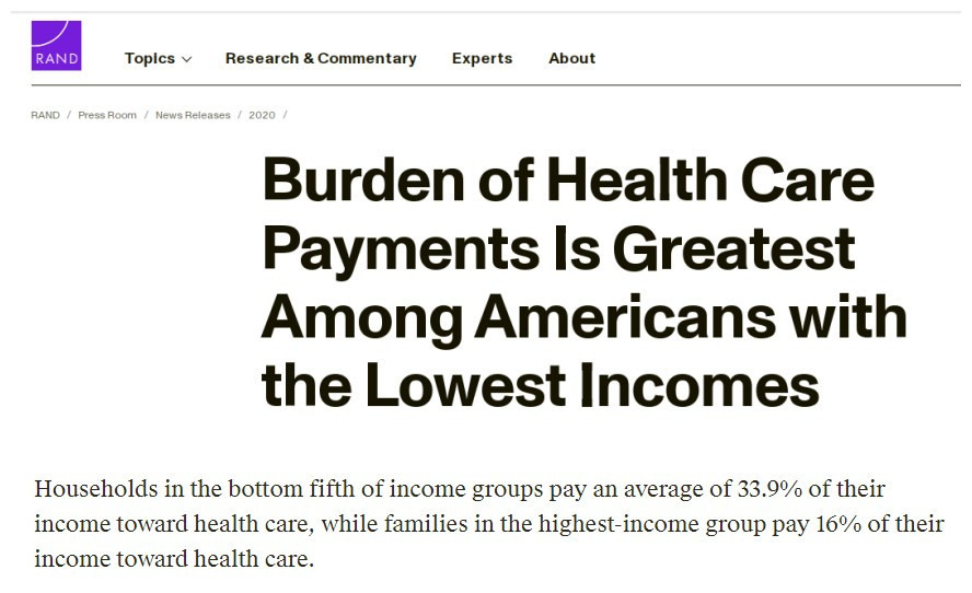 蘭德公司報告截圖顯示 收入最低的美國人的醫療保健支付負擔最大