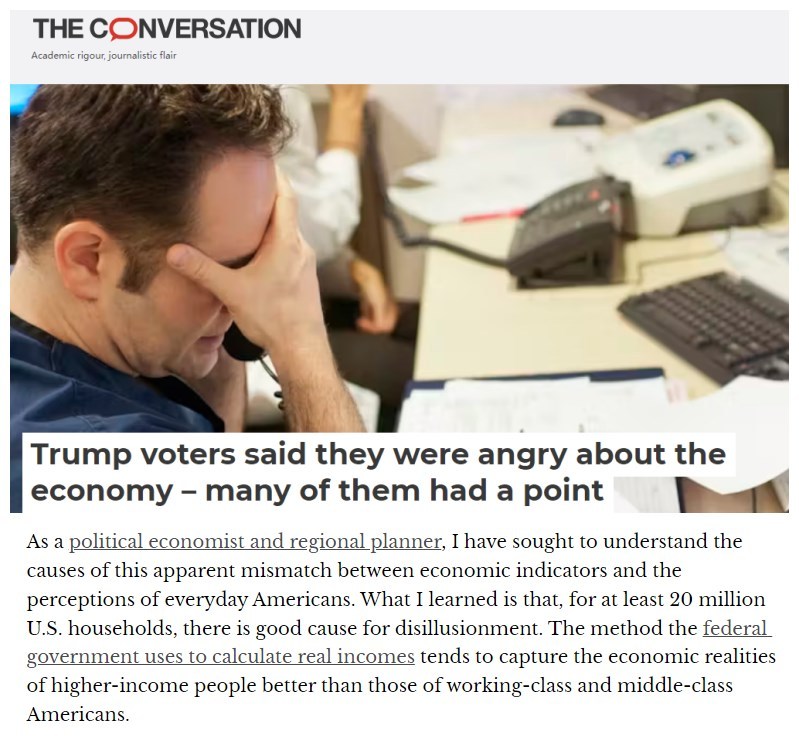 美國俄亥俄州立大學學者唐·倫納德在澳大利亞“對話”新聞評論網刊發評論文章稱,至少2000萬美國家庭有充分的理由感到失望。聯邦政府用來計算實際收入的方法往往更能反映高收入人羣,而非工薪階層和中產階級的經濟現實。根據皮尤的一項調查,認為個人財務狀況良好的美國人比例從2019年的50%下降到今年的41%。