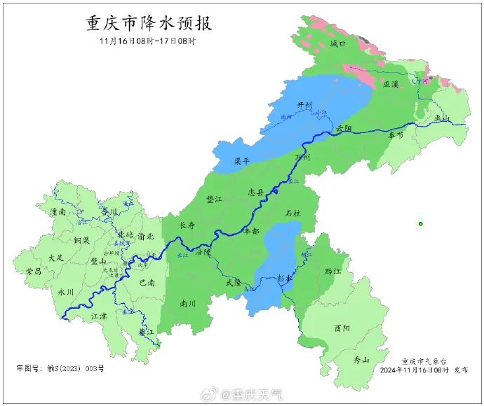 16日白天到夜間,中東部地區中到大雨(10~40毫米),其餘地區小到中雨,冷空氣影響時山口河谷地區有4~6級陣風,氣温6~21℃;中心城區間斷小雨,氣温12~19℃。