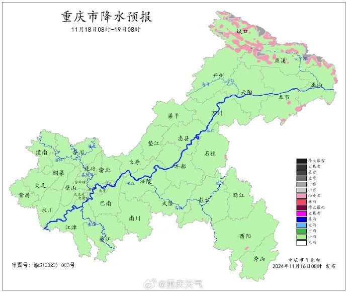 18日白天到夜間,各地陰天有間斷小雨,海拔1500米以上地區有雨夾雪或小到中雪,氣温4~15℃;中心城區間斷小雨,氣温12~14℃。