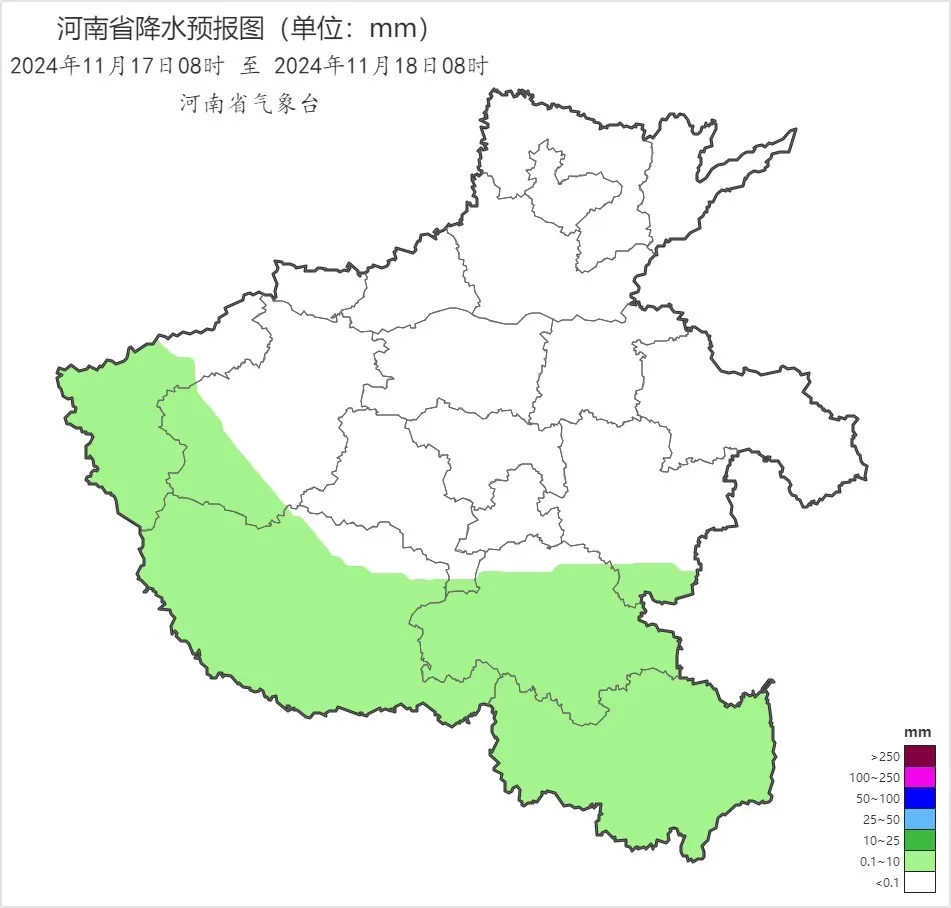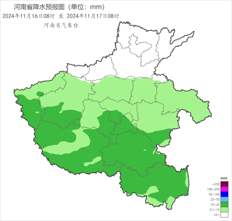 今天下午到夜裏,全省陰天,沿黃及以南有小雨,三門峽南部、洛陽南部、平頂山南部、許昌南部、漯河、周口、商丘南部、駐馬店、南陽、信陽部分縣市有中雨,西部高海拔山區有雨夾雪或小雪。西部西北風,其他縣市偏北風,全省風力4級左右,中西部、南部陣風6到7級。