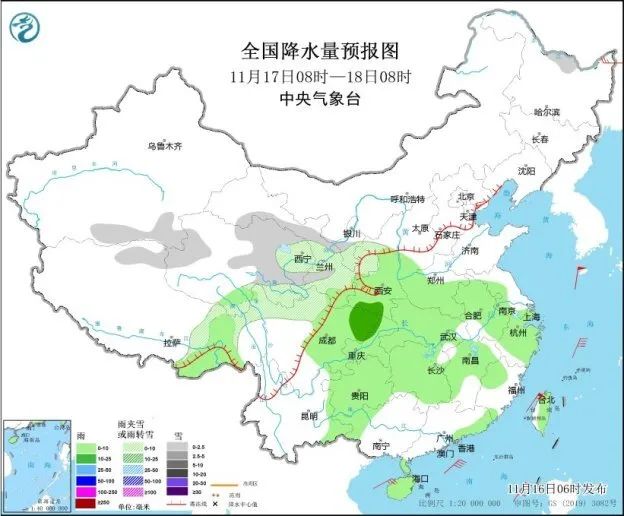 今明兩天中東部仍有較大範圍雨雪天氣 ,冷空氣過境,易造成路面濕滑、積雪結冰現象,公眾外出需防範對交通出行的不利影響。另外,受颱風影響,華南等地的公眾需關注預報、預警信息 ,儘量減少外出,關好門窗,警惕各類次生災害 。