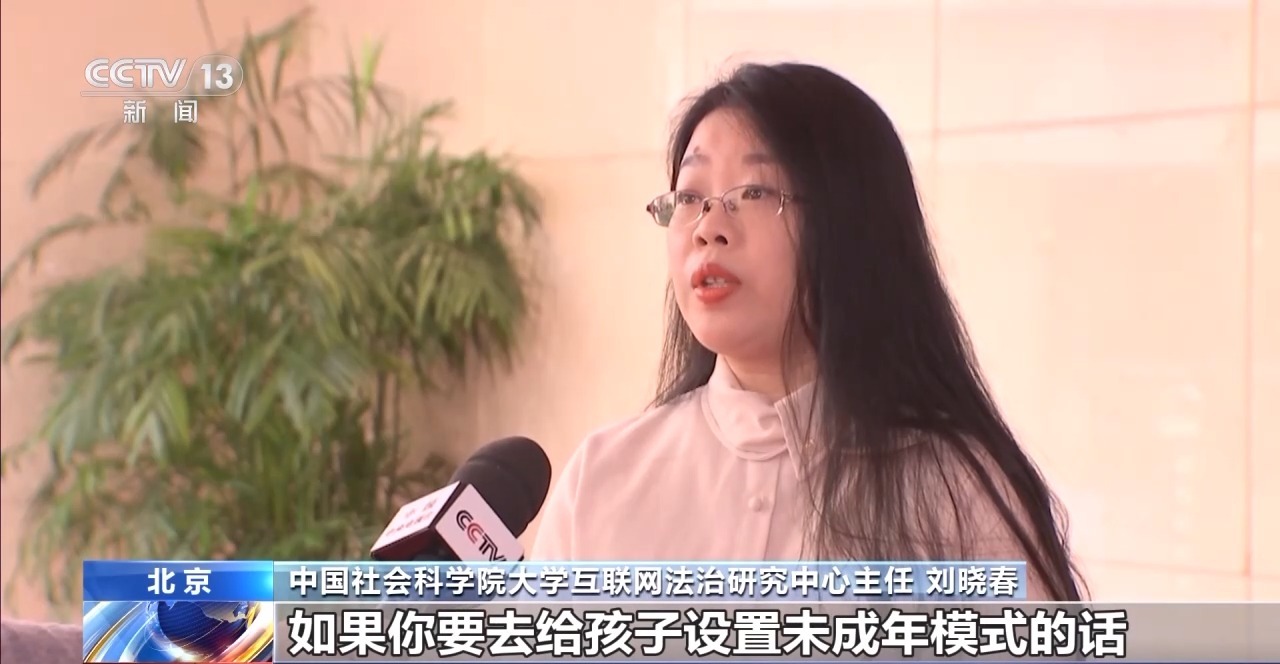 *中國社會科學院大學互聯網法治研究中心主任 劉曉春:*因為有一些內容對於孩子來説確實容易沉迷,忘記時間一直用下去,那麼這一塊風險的內容,未成年模式也進行了相應的屏蔽或者過濾的功能。如果出現了甚至有繞開模式等一些技術措施的話,那麼模式也推薦各個廠家和平台能夠去做更完備的一個防範。
