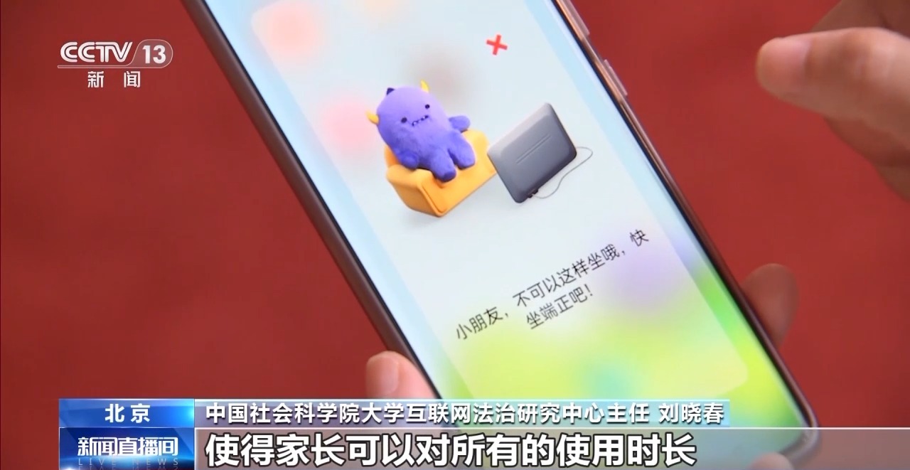 *中國社會科學院大學互聯網法治研究中心主任 劉曉春:*比如説有一個遊戲軟件,在這個遊戲軟件裏面的時間到了,那麼孩子可能就切換到另一個遊戲去了,但總的時長可能不太好控制。現在這個模式就是從整體上控制的方式,使得家長可以對所有的使用時長進行封頂控制。超過了時長之後,孩子在這個系統裏面就玩不了,或者説是使用不了相應的App了,這是一個統一化的管理。