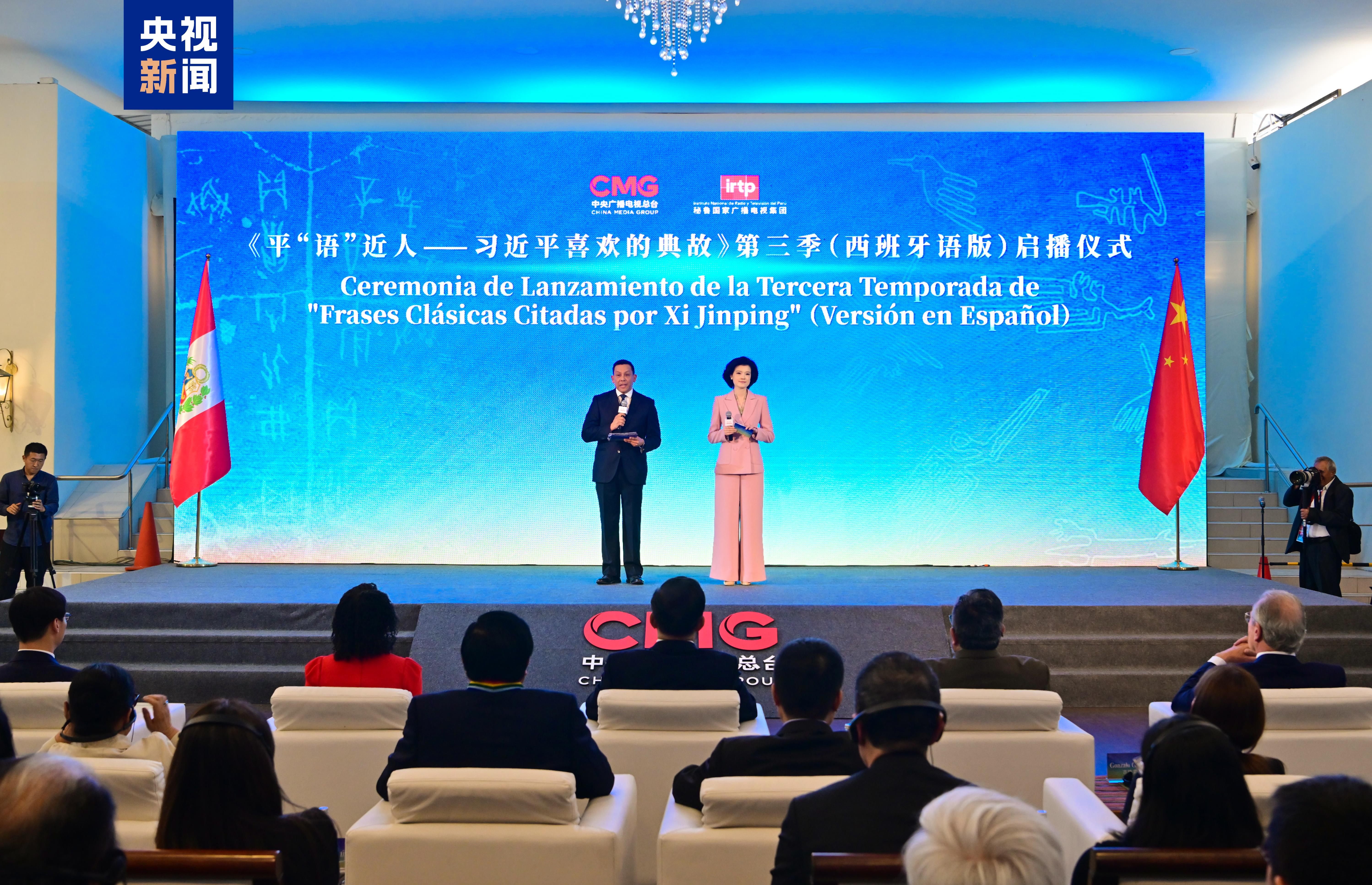 在中國國家主席習近平赴利馬出席亞太經合組織第三十一次領導人非正式會議並對秘魯進行國事訪問之際,當地時間11月15日,由中國中央廣播電視總枱製作的《平“語”近人——習近平喜歡的典故》第三季(西班牙語版)啓播儀式在利馬舉行。秘魯總統博魯阿爾特通過視頻致辭對節目在秘魯播出表示祝賀。秘魯政治、經濟、文化、媒體、學術等各界嘉賓近兩百人出席活動。