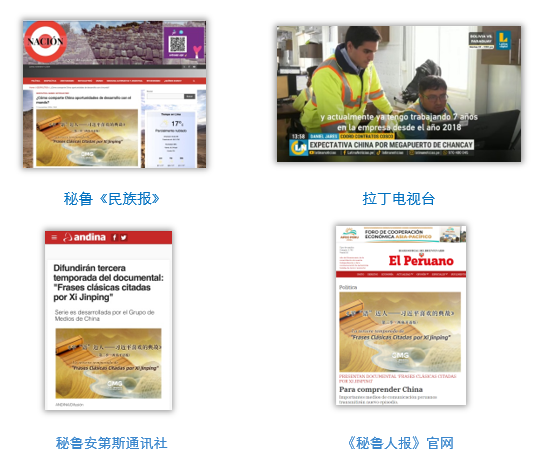 《平“語”近人——習近平喜歡的典故》第三季(西班牙語版)即日起在秘魯國家廣播電視台、秘魯電視聯播網、秘魯廣播節目集團電視端、秘魯安第斯新聞台、泛美電視台、拉丁電視台、秘魯《民族報》等多平台落地播出。14日,秘魯最具影響力的官方報紙《秘魯人報》及其官網刊發節目在秘魯落播的消息。秘魯安第斯通訊社、《共和國報》、秘魯EXITOSA電台、秘魯消息網以及拉美新聞聯盟官網等拉美主流媒體播發相關報道。