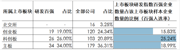 注:鑑於此處僅考慮內地上市板塊,並不涉及美股、港股上市的百強企業,故各內地上市板塊企業數量的簡單加總不足100家。