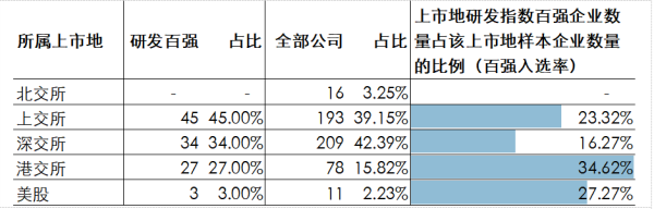 注:鑑於存在企業多地上市的情況,各上市地百強企業數量簡單加總超過100家。