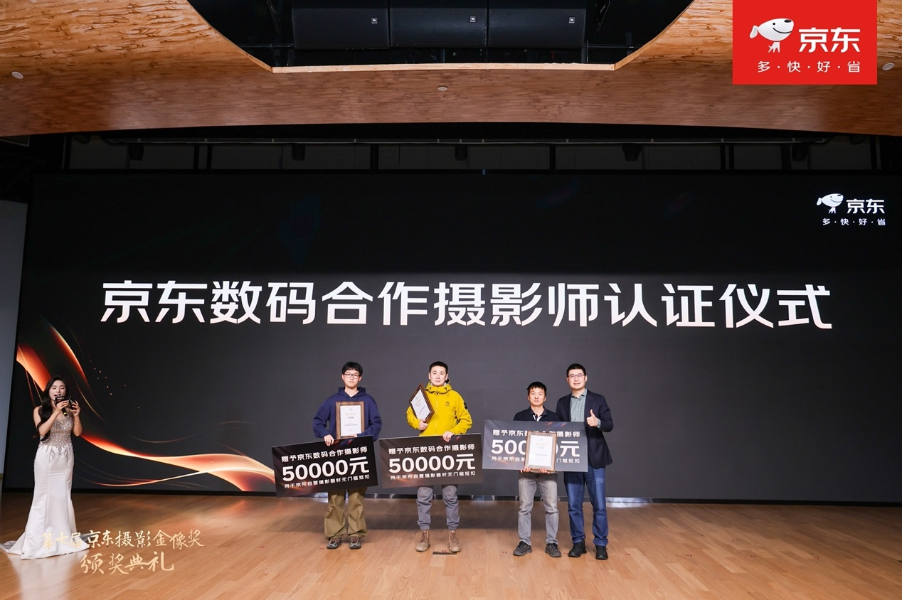 頒獎典禮現場還舉行了京東數碼合作攝影師認證儀式,王超、李冬、吳嘉桐在重重選拔和多維考量下,成為京東數碼合作攝影師。他們將受邀參與京東數碼多種類型營銷活動的視覺創作和定製化攝影項目,將藝術靈感融入產品設計,共創聯名佳作。