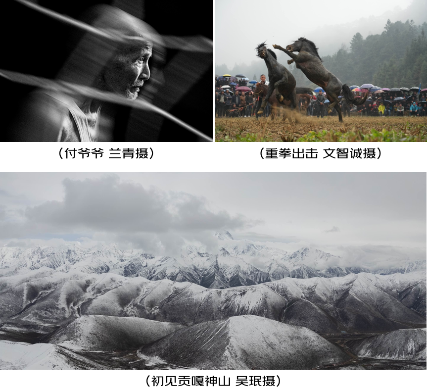 京東攝影金像獎年度銅獎獲獎作品是《彩色天路》《扶搖九萬雲巔》《孩子們的快樂》《冰上水墨畫》《愛情童話》《遠近之間》等,作品構圖主體突出且佈局合理,畫面色彩豐富,飽含情感與温度。《付爺爺》《重拳出擊》《初見貢嘎神山》等作品洋溢着滿滿的創意和勇氣,表達了作者對攝影的獨特見解,獲得優勝獎。