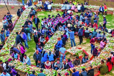 哈尼族長街宴。金家茂攝 圖片由北京國際攝影周“中國稻作文化影像展”提供