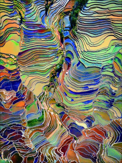 陽光下多彩的哈尼梯田。盧文攝 圖片由北京國際攝影周“中國稻作文化影像展”提供