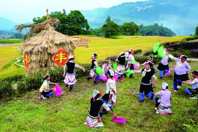 “拉珍莫!”哈尼族的祝酒詞鏗鏘有力,伴着田間瀰漫的陣陣稻香,阿者科村的村民們手捧滿溢的紅米酒,笑臉盈盈,共同祈盼來年也有個好收成。
