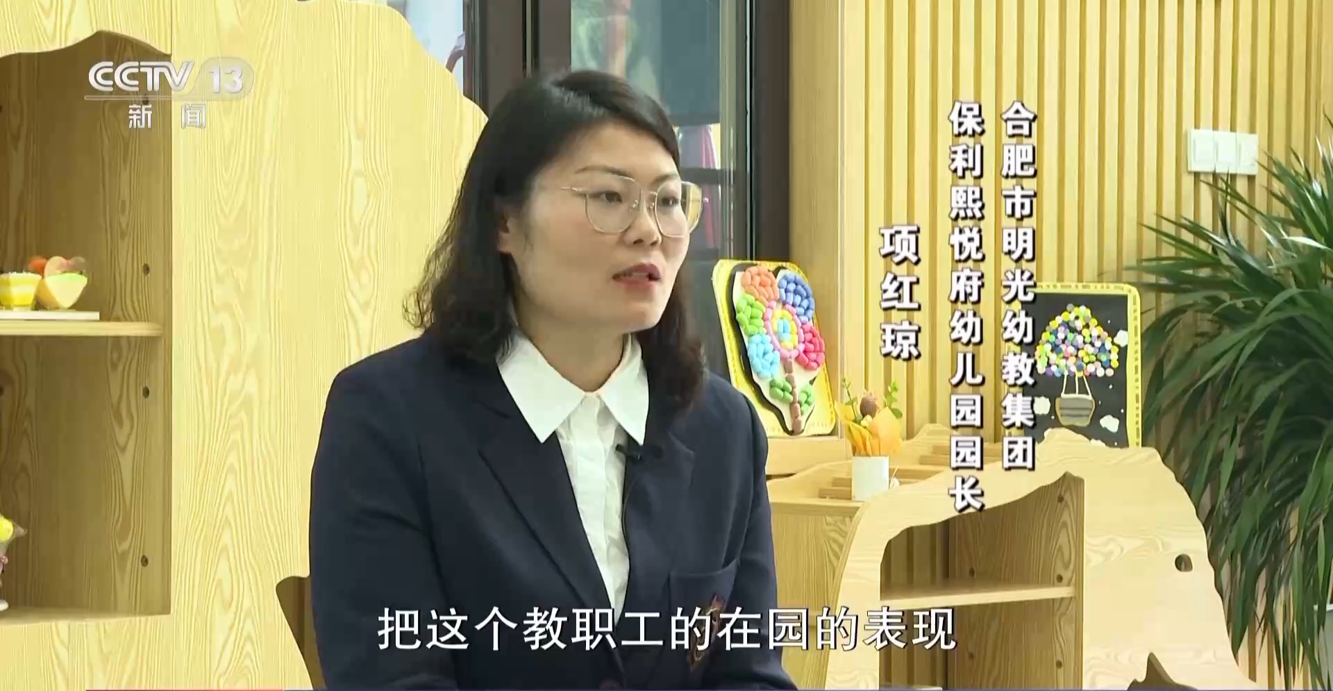 合肥市明光幼教集團保利熙悦府幼兒園園長 項紅瓊:在招聘老師的時候,都會很謹慎和每一位老師溝通很長一段時間。很擔心會招來以後,應聘者有一些我們沒有關注的點,但是這些行為卻傷害到了我們的孩子。