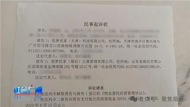 目前,已經有業主向法院提起了訴訟,將築夢優家(天津)科技有限公司以及築夢優家(煙台)公寓管理有限公司列為了被告,要求解除房屋託管協議並賠償損失。