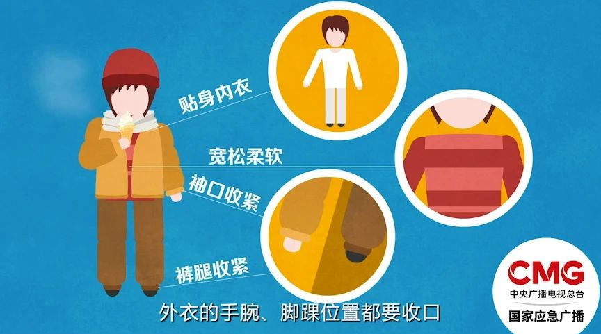 *內衣穿貼身的,中間選寬鬆柔軟的。*外衣的手腕、腳踝位置都要收口,防止熱量流失。頭、頸、腳都是最怕冷的地方,帽子、圍巾、保暖鞋襪也可以安排上。
