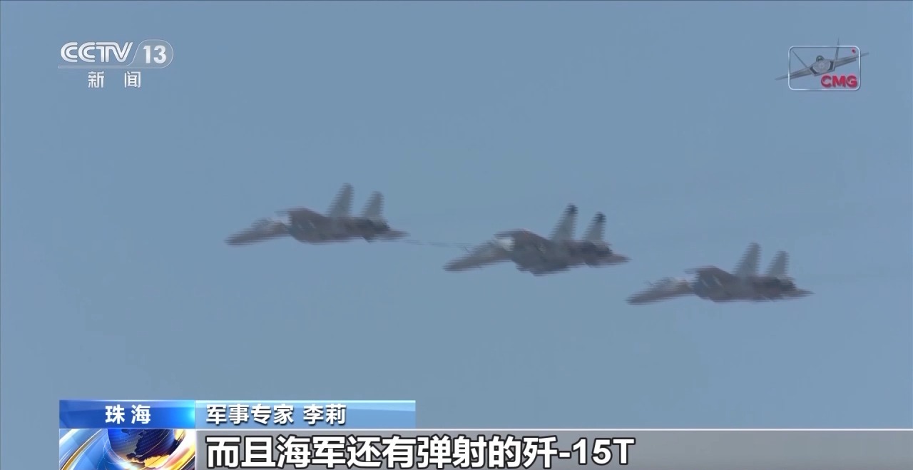 軍事專家 李莉:不僅陸軍有武裝直升機,海軍有艦載直升機,而且海軍還有彈射的殲-15T。雖然航母沒有開過來,但是航母平台上最重要的戰鬥力開過來了。