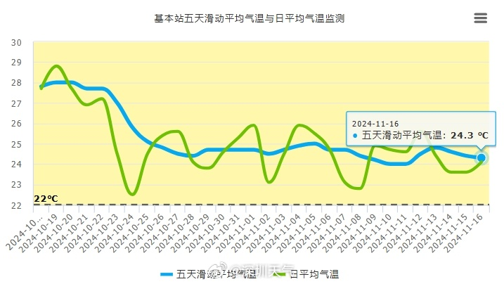 11月20日-21日受颱風“萬宜”殘餘雲系影響,有陣雨,部分時間雨勢較大,最低氣温降至16℃左右,體感陰涼。