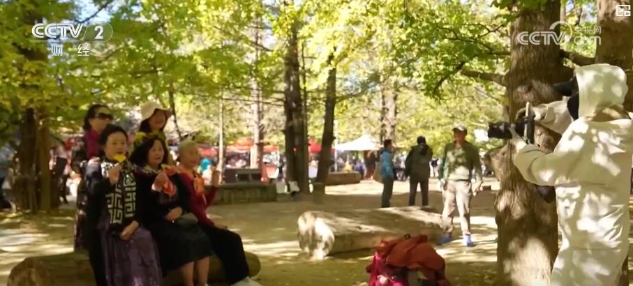 依靠“銀杏村”這張名片,當地形成了一條包括服裝租賃、美妝、跟拍等多項業務的產業鏈,到處都能看到跟拍攝影師在給遊客拍照。