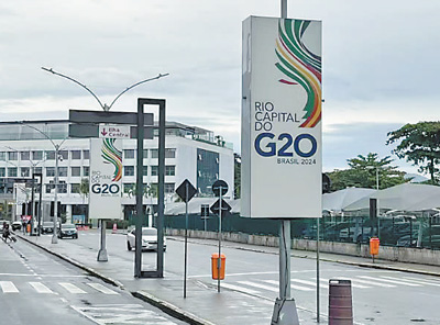 里約熱內盧街頭的二十國集團領導人峯會標識。