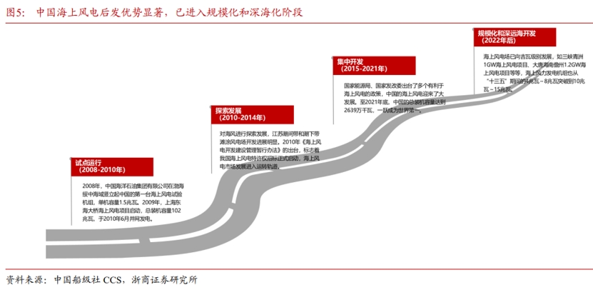 浙商證券還建議關注壁壘高、格局優、出海早的環節和標的,包括全球供需格局較好且具備較高進入壁壘的海纜公司、具備出海能力且擁有自有港口及吊裝優勢的塔樁公司、抗通縮屬性較強且具備核心技術優勢配套較早的軸承公司、市場佔有率較高的頭部大型零部件公司以及具備規模化優勢與品牌保障的整機公司。
