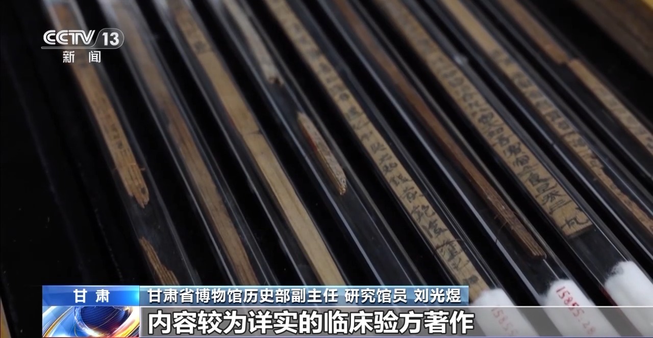 *甘肅省博物館歷史部副主任 研究館員 劉光煜:*這一套醫藥簡,是我國目前發現最早、內容較為詳實的臨牀驗方著作。