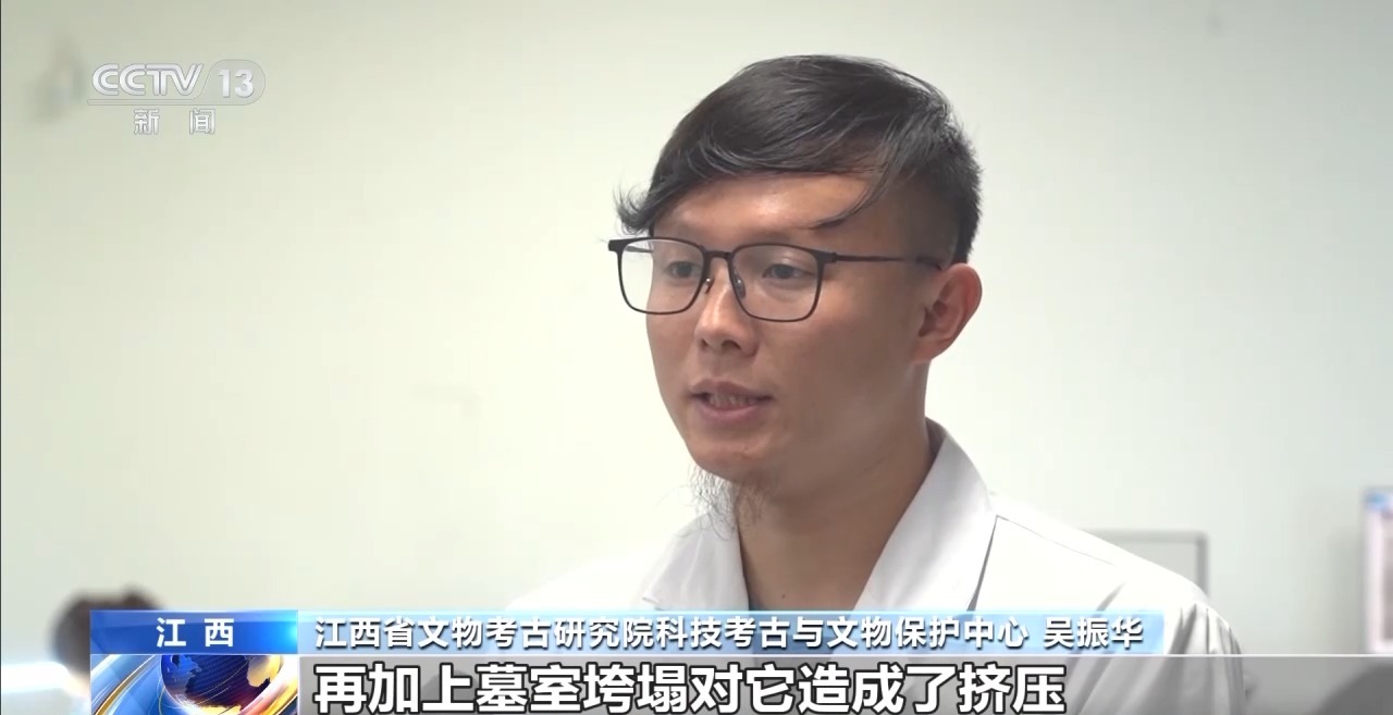 *江西省文物考古研究院科技考古與文物保護中心 吳振華:*海昏侯墓出土的竹簡,因為自身的降解比較嚴重,再加上墓室垮塌對它造成了擠壓,通俗地講已經跟成麪條一樣的,一碰就碎,保存狀況非常差。通過加固之後,從2023年年初才逐步開始進行清洗,脱水、信息採集這類工作。大致在2026年左右,會對5200多枚竹簡陸續完成脱水工作以及信息採集工作。