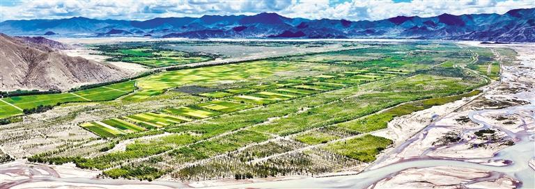 8月23日,日喀則市南木林縣“雅江北岸生態示範區”3.6萬畝生態防護林鬱鬱葱葱。經濟日報記者 袁勇 攝