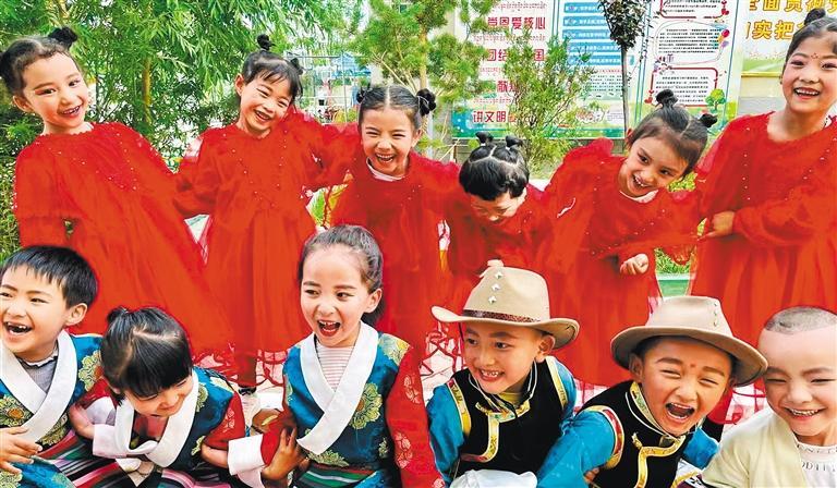 2022年6月1日,孩子們在山東援建的日喀則市齊魯幼兒園歡度兒童節。經濟日報記者 袁勇 攝