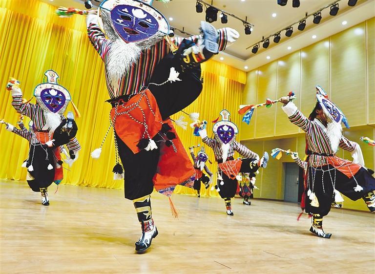 9月13日,日喀則市昂仁縣民間藝術團演員在淄博援建的迥巴藏戲國家級非物質文化遺產保護中心演出。經濟日報記者 袁勇 攝