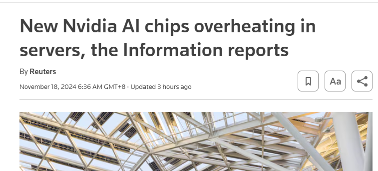 外媒:英偉達新款Blackwell AI芯片面臨過熱問題,或致數據中心部署延期