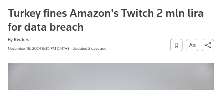 土耳其對亞馬遜旗下Twitch處以200萬里拉罰款,因數據泄露事件