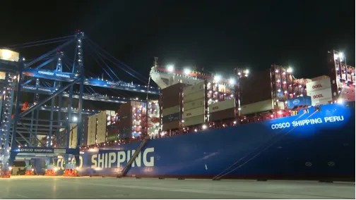 錢凱港位於秘魯西部的太平洋沿岸,距離首都利馬約80公里,屬天然深水港,最大水深17.8米,可處理超大型集裝箱船舶。錢凱港是共建“一帶一路”在拉美地區的標誌性項目之一,一期工程於2021年開工,經過近3年的建設,如今錢凱港已初具規模,共建成4個泊位,總吞吐量約100萬標準箱。