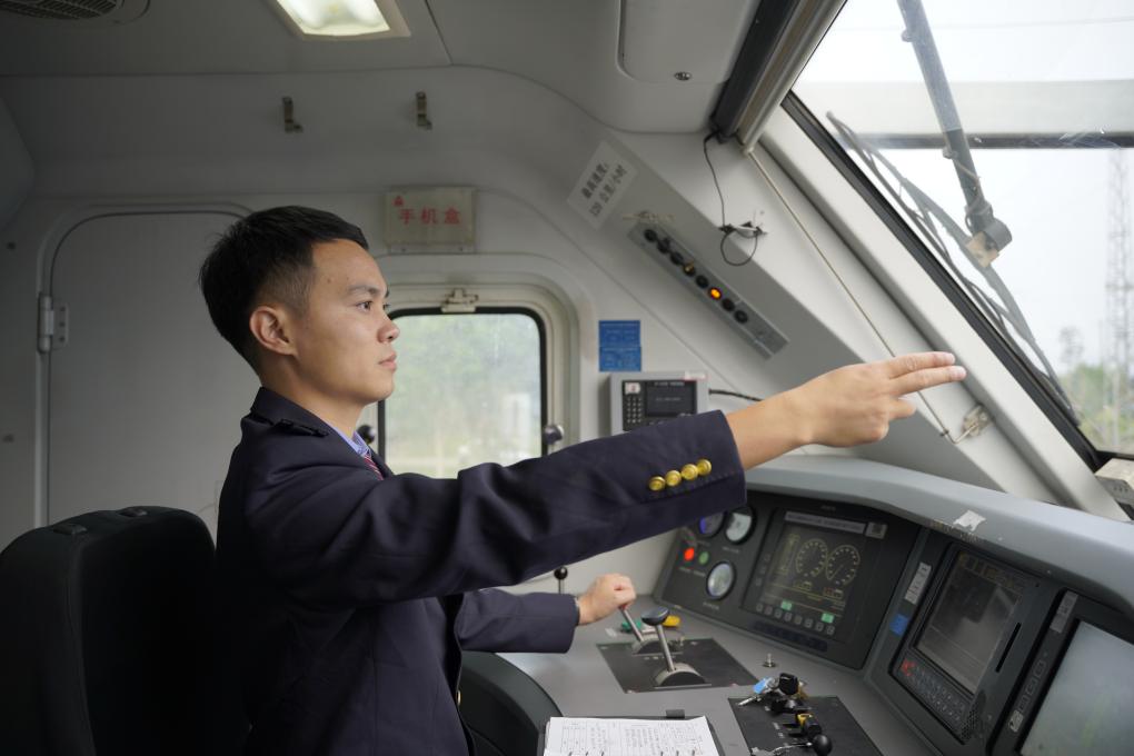 11月15日,李峯正在駕駛中歐班列。新華社發