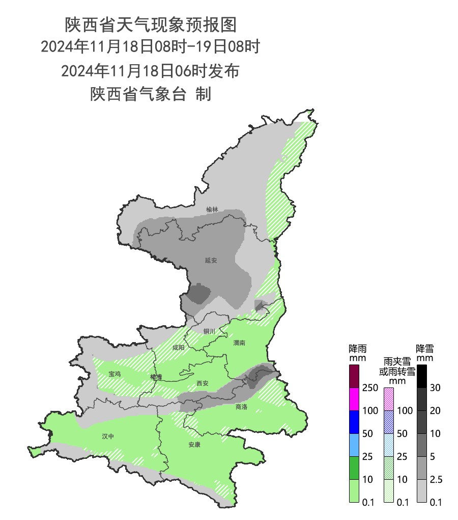 *今天晚上:*全省多雲,陝北大部有小雪或雨夾雪(0~3毫米),關中北部及西部秦巴山區有分散性小雪或雨夾雪(0~2毫米),陝南西部有小雨(0~2毫米)。