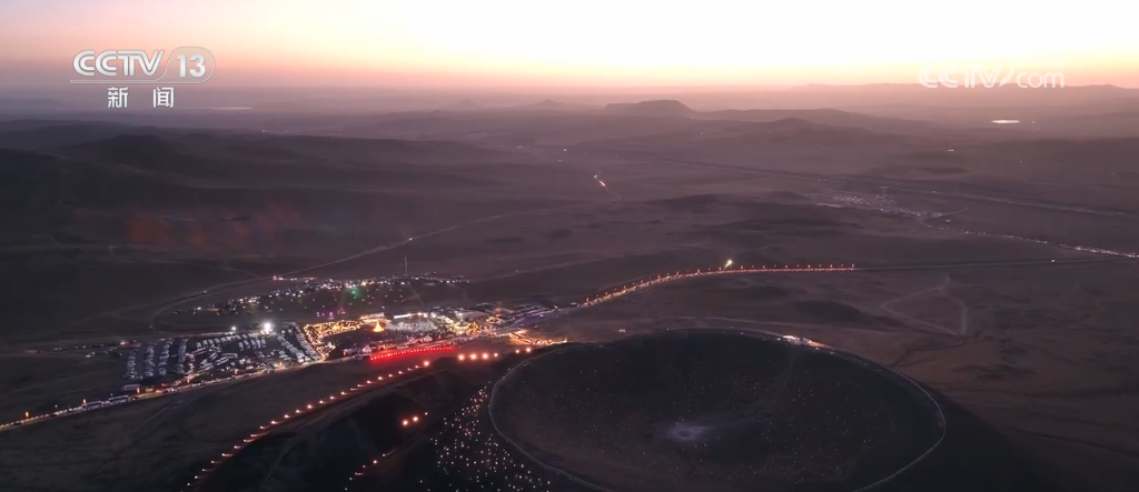 烏蘭察布市的烏蘭哈達火山地質公園分佈着不同類型、不同規模的火山30多座,火山羣鑲嵌在廣闊的草原之上,被譽為天然的“火山博物館”。為了增強遊客的體驗感,這個冬季,當地打造了特色火山燈光秀。