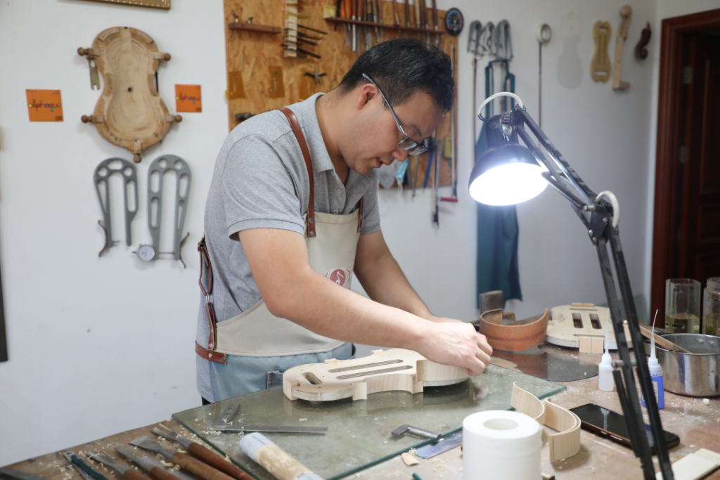 “剛到提琴廠的時候,一坐就是一整天,也有屁股坐不住的時候,也有特別煩特別膩的時候。”陳鳳軍説,但幹着幹着就愛上了這行,“能把十把琴設計出十種不同的演奏聲音,是一種奇妙無窮的成就感。”