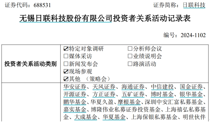 【環球網財經綜合報道】11月18日盤後,上市公司日聯科技(688531.SH)發佈了《投資者關係活動記錄表》,披露公司接待了華安證券、天風證券、海通證券、中信建投等數十家機構調研,公司董事會秘書辛晨參與並解答投資機構代表提問。