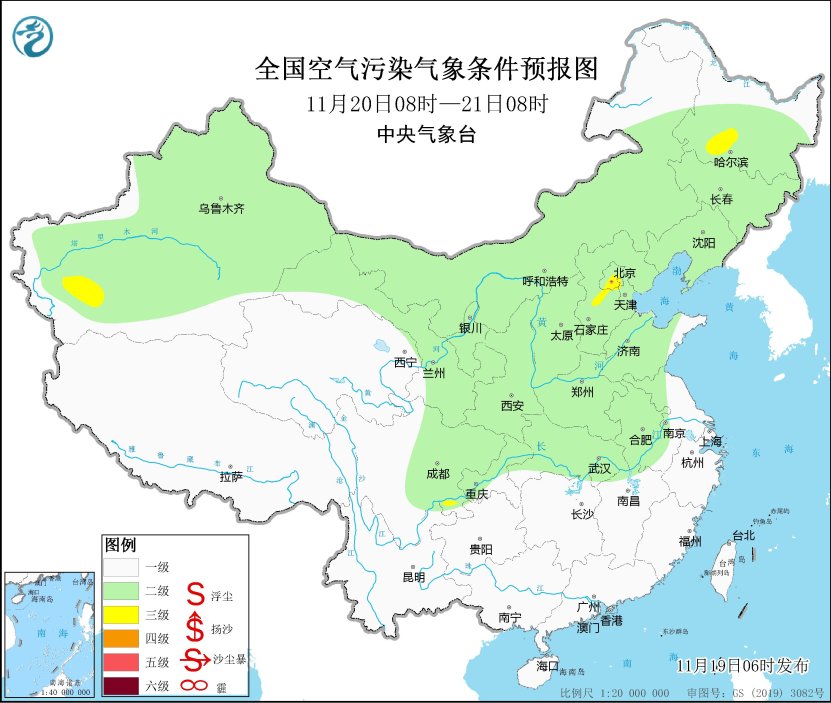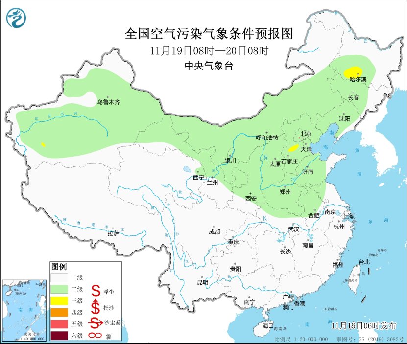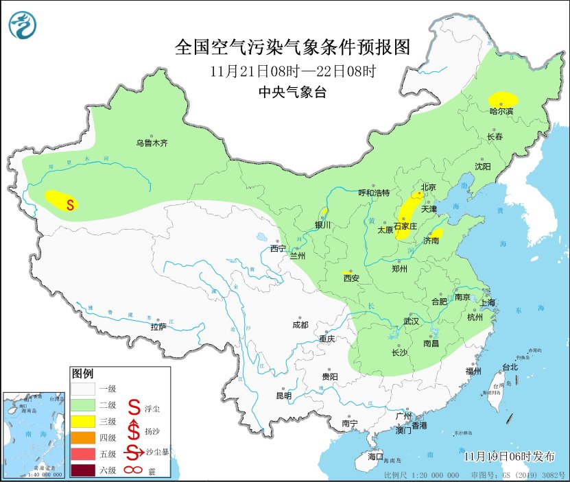 19日至21日,全國大部地區大氣擴散條件較好,無大範圍霧霾天氣。22日至24日,華北中南部、黃淮西部等地大氣擴散條件一般,有輕到中度霾。