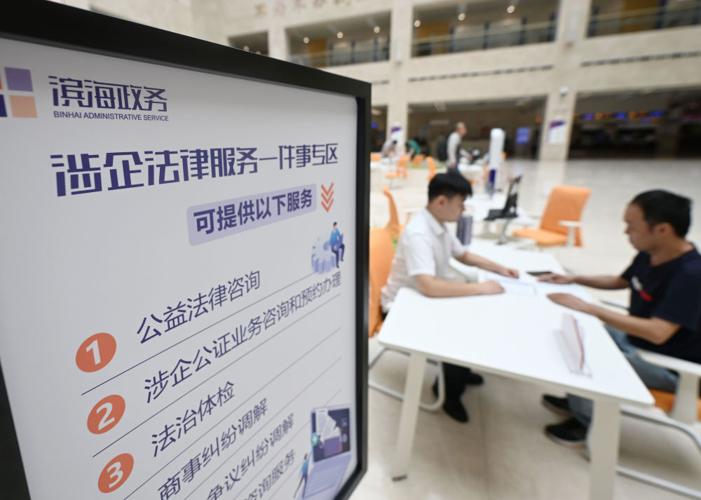 在天津市濱海新區政務服務中心,工作人員在“涉企法律服務一件事”專區為市民提供服務(2024年7月31日攝)。新華社記者 趙子碩 攝