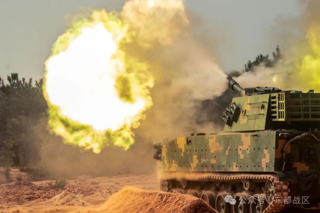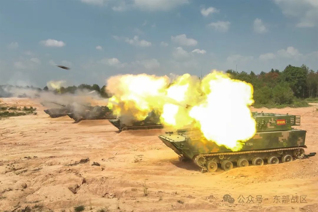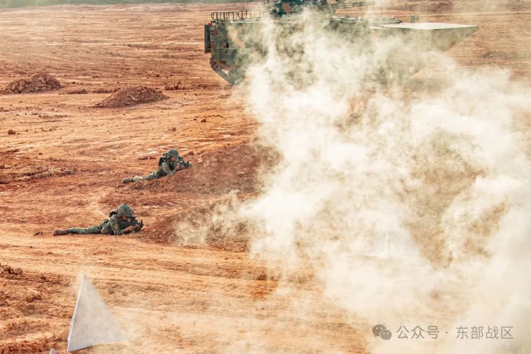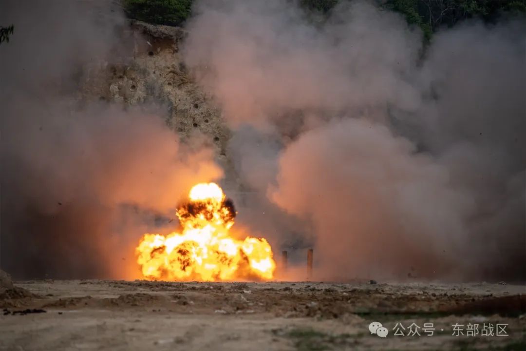 訓練場上瞬間炮聲隆隆、塵土飛揚